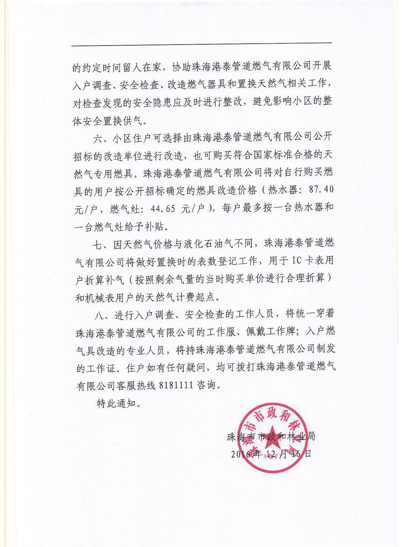 珠海市市政和林業(yè)局關于開展高新區(qū)天然氣置換工作的通知
