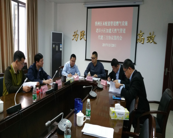 城燃公司與香洲區(qū)城管局和香洲區(qū)住更局簽訂老小區(qū)加建天然氣管道代建三方協(xié)議