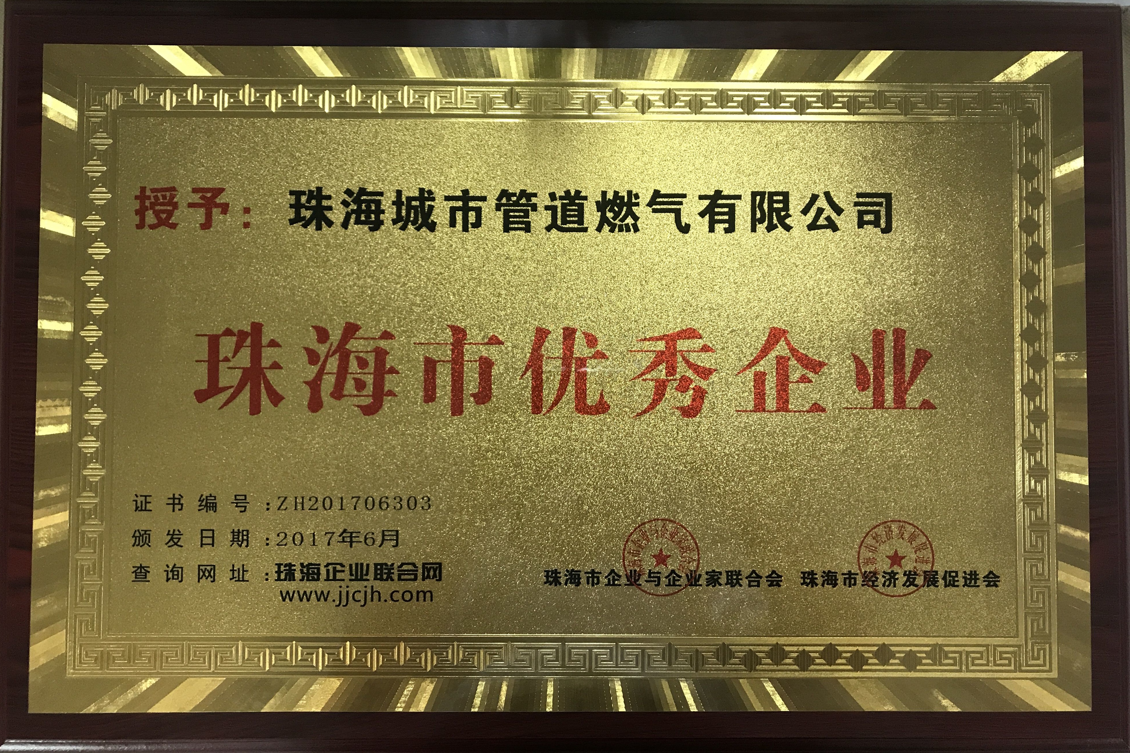 珠海城燃榮獲“珠海市優(yōu)秀企業(yè)”稱號