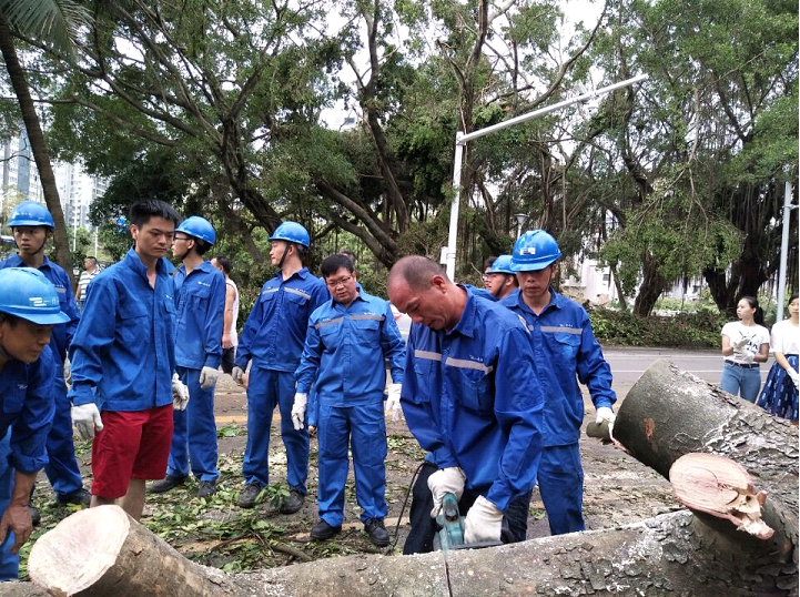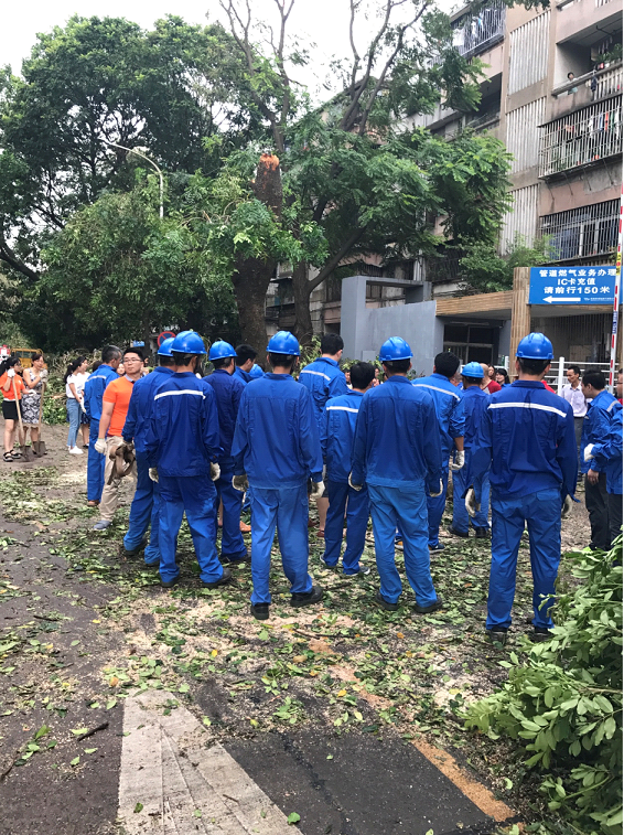 “天鴿”肆意妄為后一路呼嘯而去,沒有悲憫,不帶仁慈。徒留這座幸福浪漫的美麗之城,滿眼的瘡痍,全城的悲傷。然而我們珠海港管道燃?xì)馊藖?lái)不及悲傷,根據(jù)珠海港集團(tuán)和公司的部署安排,強(qiáng)臺(tái)風(fēng)過后立即進(jìn)行受損設(shè)備的維修,保證客服、安全、運(yùn)行盡快全面復(fù)產(chǎn)。中斷的客服熱線重新開通了!營(yíng)業(yè)廳網(wǎng)絡(luò)恢復(fù)了!恢復(fù)通電和網(wǎng)絡(luò)信號(hào)的24小時(shí)燃?xì)庾灾K端機(jī)開始有交易記錄!售后上門服務(wù)工作恢復(fù)正常!在公司網(wǎng)絡(luò)中斷的情況下,工作人員及時(shí)通過手機(jī)信號(hào)緊急通知告知、營(yíng)業(yè)廳電子滾屏播放目前客服運(yùn)營(yíng)情況,并熱心詳細(xì)做好災(zāi)后用氣引導(dǎo)工作。 這遠(yuǎn)遠(yuǎn)還不夠,盡管環(huán)衛(wèi)工人日夜加班,廣州深圳的支援隊(duì)伍也日夜兼程,仍無(wú)法及時(shí)清理倒在路上的大樹,造成出行困難并且存在嚴(yán)重的安全隱患。于是,可以看到一抹抹藍(lán),扛著電鋸、帶著掃把和繩索,配合著全城的清障工作,一點(diǎn)點(diǎn)地清理著路面的障礙物。