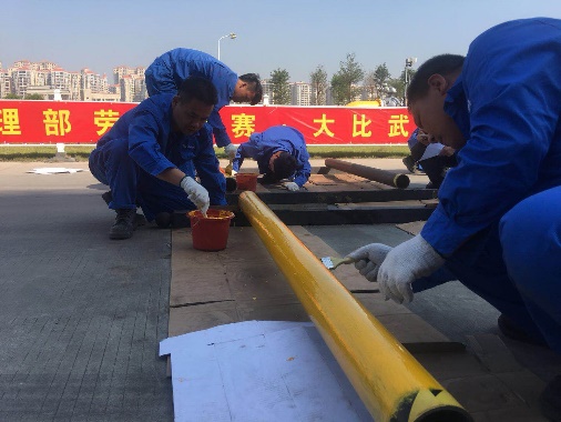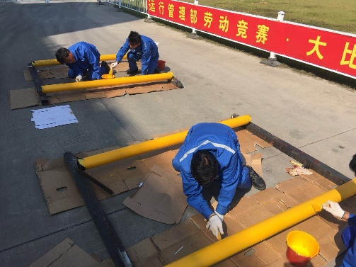 為了有效提高生產一線員工的技術素質和操作水平,選拔崗位能手,進一步提升公司安全生產的業(yè)務水平,港泰燃氣運行管理部根據(jù)公司、工會要求,以“月月有比武,季度循環(huán)賽”的形式,遵循“分批比拼,全員參與”的原則分別于2017年度10月、11月、12月舉行三場別開生面的勞動競賽—大比武。共有39人次參加了第四季度三個科目的比拼。 “我是粉刷匠”科目是雙人組隊賽,考核參賽選手對于油漆和稀釋劑的標準配合比掌握是否牢固,檢驗員工刷漆細節(jié)處理,固定管道的底部刷漆等技術要點,檢驗隊員配合是否默契、做事是否細心,時間短、質量優(yōu)者獲勝。