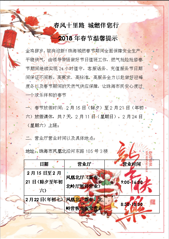 春風(fēng)十里路 城燃伴您行——2018年春節(jié)溫馨提示