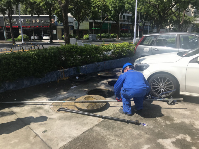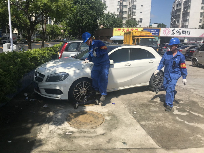 圖說(shuō):使用移車器轉(zhuǎn)移占?jí)洪y門井蓋的車輛。