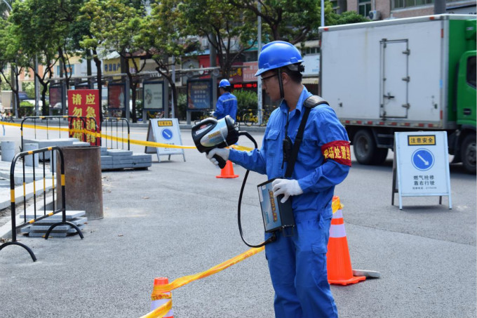 圖說(shuō):搶險(xiǎn)應(yīng)急處置組現(xiàn)場(chǎng)監(jiān)測(cè)燃?xì)鉂舛取?/span>