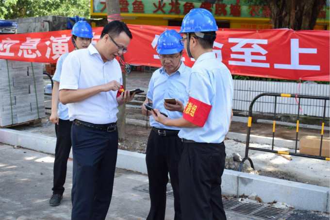 圖說(shuō):評(píng)估組現(xiàn)場(chǎng)對(duì)搶險(xiǎn)時(shí)間進(jìn)行確定。