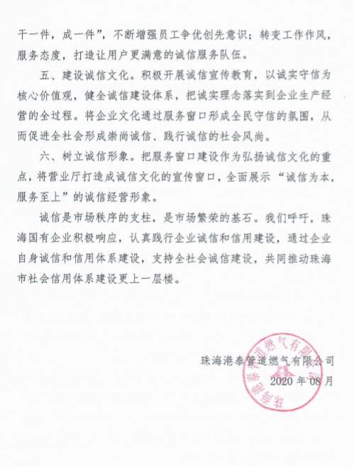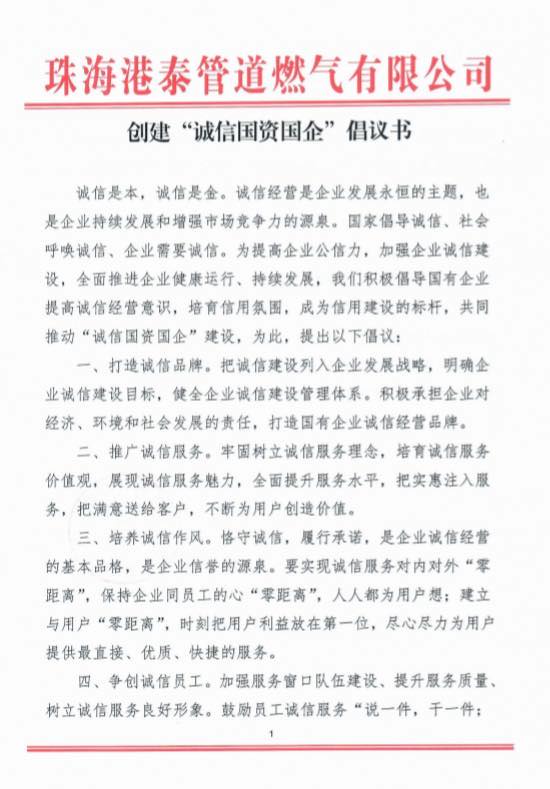 圖說(shuō):港泰燃?xì)獯韯㈡掳l(fā)出創(chuàng)建'誠(chéng)信國(guó)企“倡議