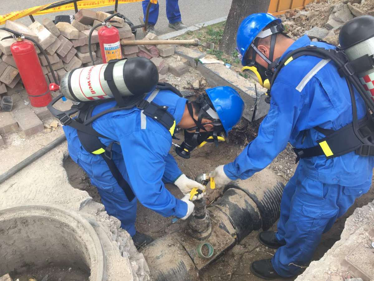 迅速處理燃氣泄露-——穿戴自給式空氣呼吸器、帶壓降低凝水排放閥技能比武。