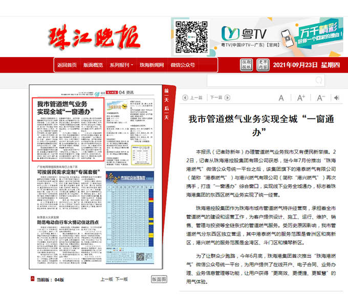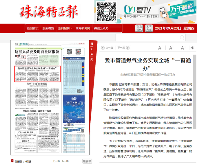 【轉(zhuǎn)載】珠海管道燃氣業(yè)務實現(xiàn)全城“一窗通辦”