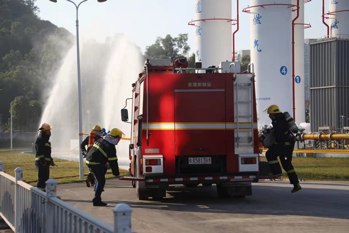 為提高企業(yè)應(yīng)對事故風(fēng)險(xiǎn)的能力,以實(shí)戰(zhàn)提升搶險(xiǎn)救援隊(duì)伍的應(yīng)急處置能力,為全市燃?xì)獍踩U咸峁└玫臈l件。2021年11月25日下午,由珠海城市管理和綜合執(zhí)法局組織,珠海港泰管道燃?xì)庥邢薰揪唧w實(shí)施,珠海前山消防救援中隊(duì)協(xié)演的LNG儲罐根部閥門泄漏應(yīng)急搶險(xiǎn)救援演練在前山儲配站舉行。