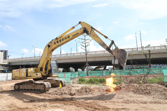 圖:第三方施工鉤機(jī)開(kāi)挖過(guò)程中挖破燃?xì)夤芷鸹稹?/span> 6月29日下午三點(diǎn)整,珠海港泰管道燃?xì)庥邢薰窘訄?bào),香洲區(qū)南屏大橋東北側(cè)濱河體育公園項(xiàng)目工地市政燃?xì)夤芫W(wǎng)遭第三方破壞導(dǎo)致燃?xì)夤艿榔屏,港泰燃(xì)夤緭屝揸?duì)伍立即奔赴現(xiàn)場(chǎng)進(jìn)行應(yīng)急處置。 原來(lái),如此“驚險(xiǎn)”的一幕,是珠海市城市管理和綜合執(zhí)法局、珠海市應(yīng)急管理局、珠海市香洲區(qū)城市管理和綜合執(zhí)法局聯(lián)合組織,珠海港泰管道燃?xì)庥邢薰緦?shí)施,珠海市香洲區(qū)消防救援大隊(duì)協(xié)演的一次市政管網(wǎng)遭第三方破壞應(yīng)急演練活動(dòng)。