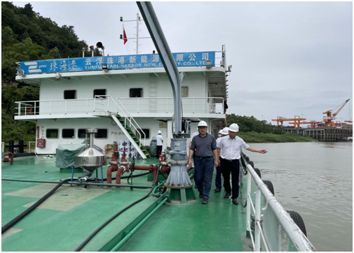 2023年5月23日上午,珠海港集團副總經(jīng)理田琛率隊到云浮珠港新能源有限公司“珠港西江能源01號”油氣合一躉船式LNG加注站調(diào)研并開展安全檢查工作。