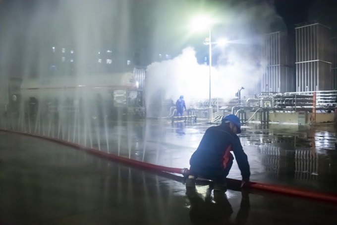 夜間險(xiǎn)情 預(yù)防先行——港泰燃?xì)忾_展夜間LNG卸車軟管泄漏應(yīng)急救援演練