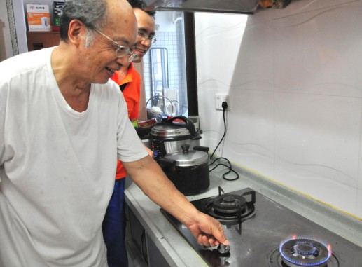 用戶看到燃?xì)庠罡脑斐晒,能用上清潔環(huán)保經(jīng)濟(jì)的天然氣很開心。