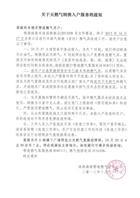 關于天然氣轉換入戶服務的通知(幸福里、城市風景)