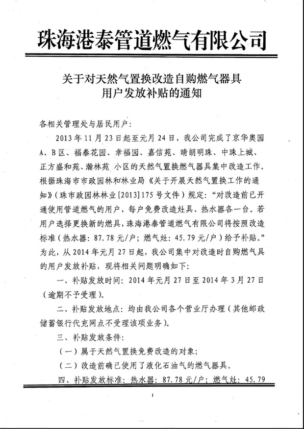 關(guān)于京華奧園A、B區(qū)、福泰花園、幸福園、嘉信苑、晴朗明珠、中珠上城、正方盛和苑、瀚林苑用戶發(fā)放補(bǔ)貼的通知
