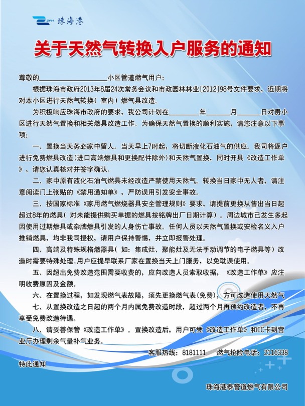 關(guān)于天然氣轉(zhuǎn)換入戶服務(wù)的通知(春暉秋實苑、菁華名苑、學(xué)府道(菁華名苑二期)、權(quán)英豪苑、暨南花園、荔園、云山詩意、桔子郡花園、誠豐怡園、逸景園(香山人家)、熙園、盈翠軒、尚東領(lǐng)御雅苑、金地伊頓山、金地國際公館、尚雅苑)
